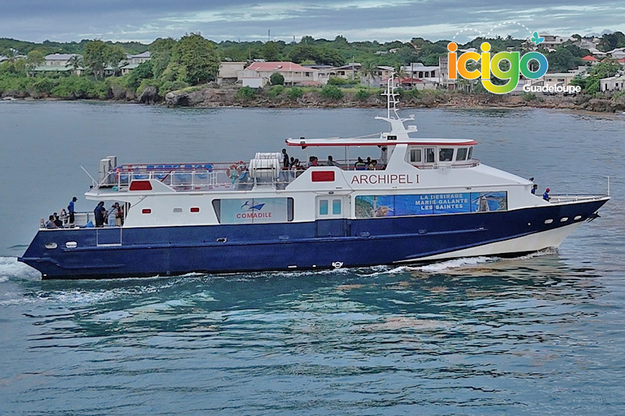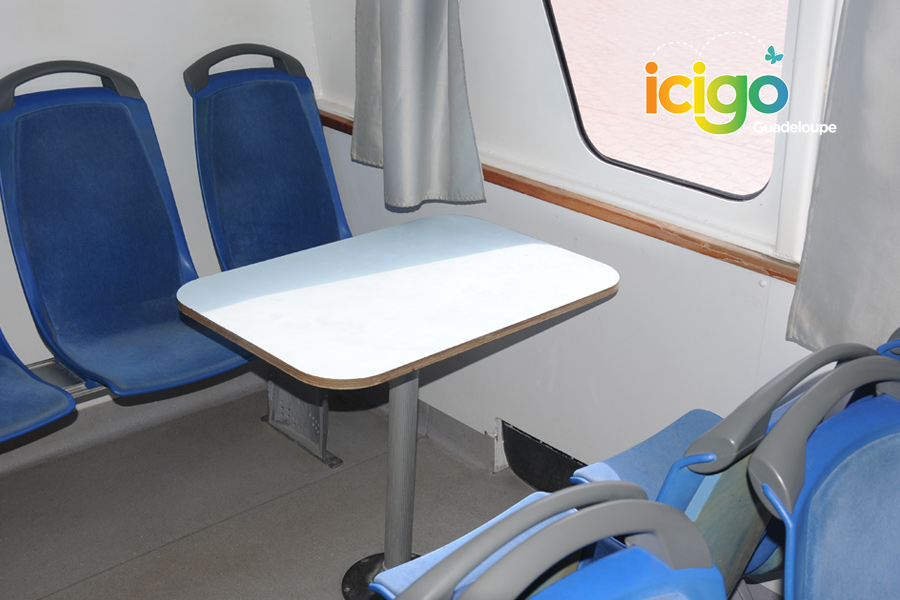 Liaison régulière vers La Désirade à bord de cette superbe navette de 287 places tout confort. À l'intérieur, aménagement multi fonctionnel avec banquettes, tables avec sièges en duo, sièges matelassés, TV écran plat, service de boissons. Tout est pensé pour que la courte traversée qui vous sépare de la Désirade se déroule agréablement.