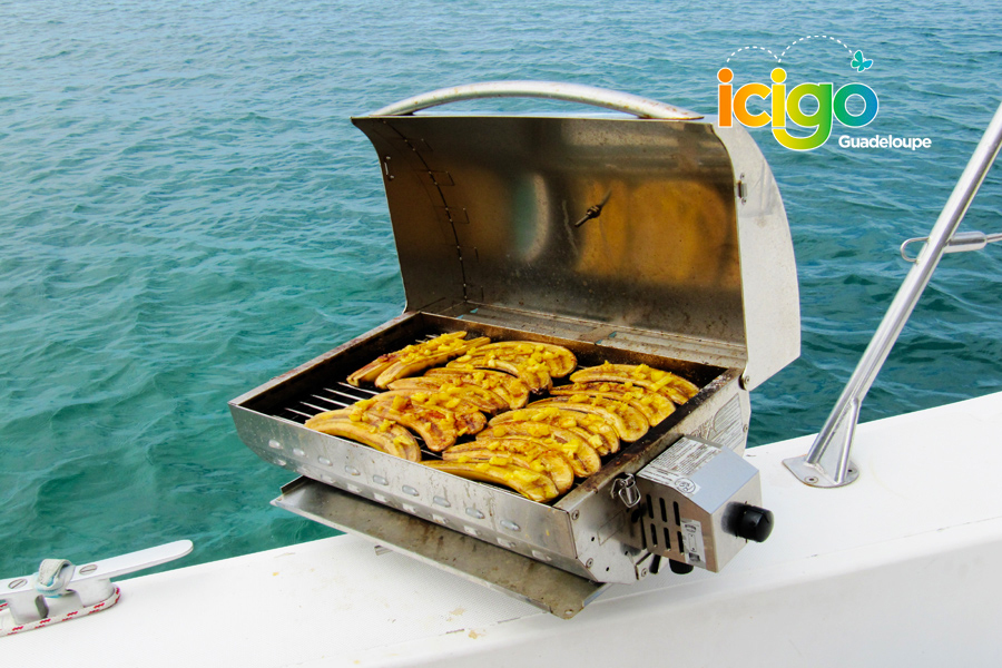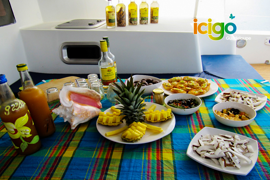L’après-midi est ensuite consacré aux plaisirs de la mer, avec des arrêts baignade et snorkeling choisis selon la météo et l’état de la mer : Pain de Sucre, îlet Cabrit, épave… Masque sur le visage et palmes aux pieds, vous explorez des eaux translucides, au milieu des poissons tropicaux.