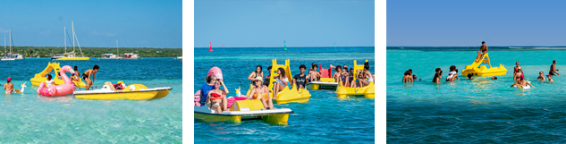Si vous préférez le calme, vous pourrez choisir le pédalo sans toboggan afin d’admirer le paysage et d'explorer la barrière de corail tout en respectant sa faune et sa flore.